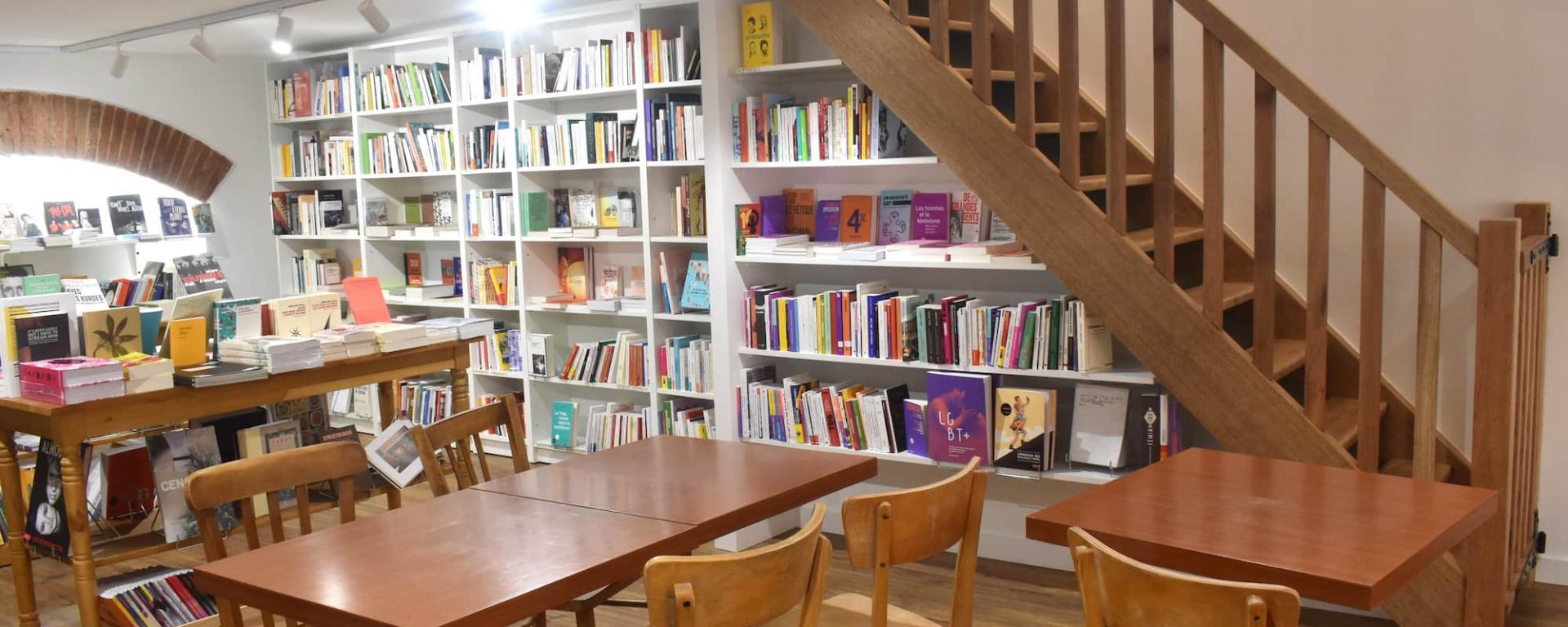Située dans la rue de Falguière, cette librairie à l’enseigne verte a des airs de petite maison. Elle garde le charme propre aux Toulousaines, dont les pièces sont prises entre les briques foraines et les escaliers en bois. Ici, l’espace est séparé en trois : une grande salle lumineuse est dédiée à la littérature jeunesse, une autre en contrebas rassemble romans et polars, tandis qu’une jolie mezzanine aménagée de tables réunit des essais sur des thématiques engagées (identité ; anarchisme ; prison, police et justice ; etc.).